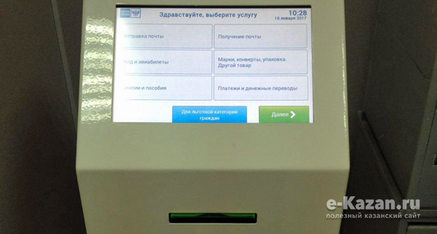 «Почта России» шагнула в будущее. Некоторые почтовые отделения в Казани поддерживают систему электронной очереди. Можно взять талон и ждать, когда пригласят к окошку, а не бегать по отделению в поисках «последнего». Редакция e-Kazan.ru объясняет, как работают аппараты и насколько они упрощают жизнь.