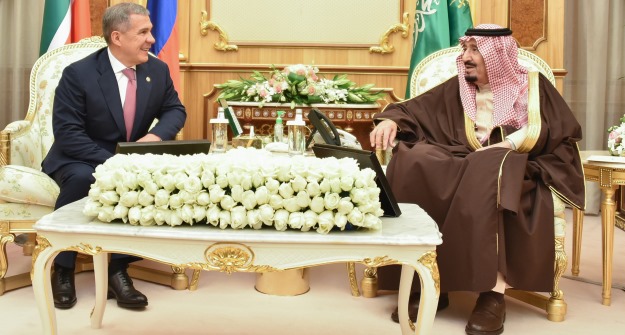 Президент РТ Рустам Минниханов сейчас находится с визитом в Саудовской Аравии. Сегодня он встретился с королем арабского государства – Хранителем Двух Святынь Его Королевским Величеством Королем Салманом бин Абдель Азизом Аль-Саудом.