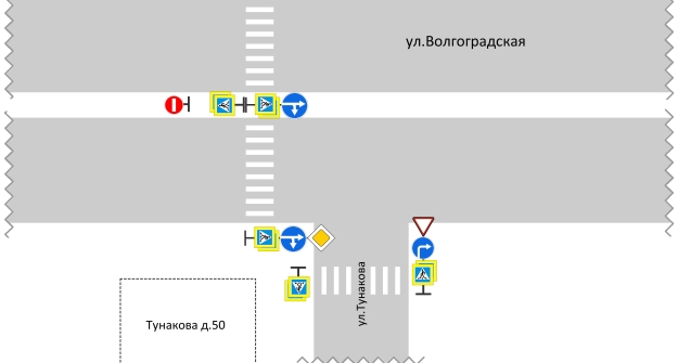 – двигаясь по улице Тунакова со стороны улицы Восстания в направлении улицы Волгоградская возможен поворот только направо в направлении улицы Декабристов;