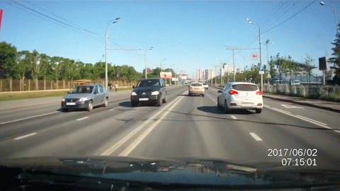 Сначала птиц пропустил красный автобус, а потом резко затормозил и автор ролика. Автомобили, ехавшие по другой полосе, тоже замедлили скорость.