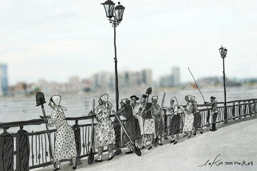 9. 1957 год. Давным-давно в далекой галактике. Идет строительство Федосеевской дамбы. Сейчас на этом месте пешеходная зона и кафе с эклерами – летом, а зимой самый популярный каток Казани.