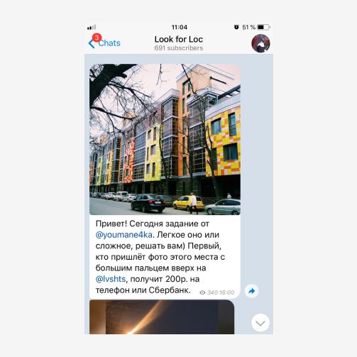 2. Канал Look for Loc (@lookforloc) – бесконечный квест по городу. Суть вот в чем: три раза в неделю публикуется задание – фотография определенного места в Казани.