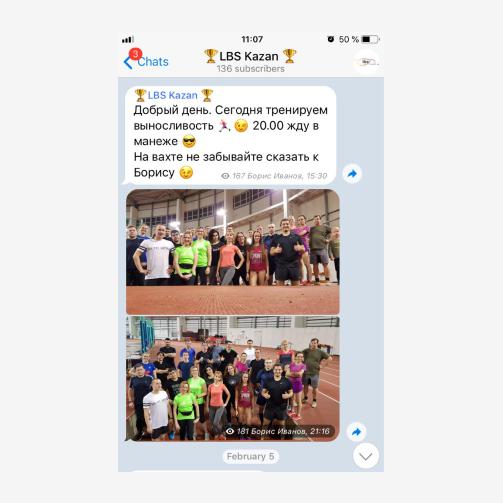 4. LBS Казань (@ar_kazan) – это беговой клуб. Прийти на тренировки может любой – клуб рассчитан на спортсменов всех уровней подготовки. Даже тем, кто может обогнать Усэйна Болта, будет чему поучиться. В telegram-канале публикуют расписание занятий, фото и видеоотчеты с тренировок.