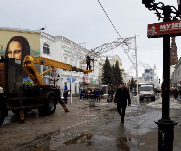 На Баумана развалилась одна из новогодних арок. Опасное место обнесли сигнальной лентой.