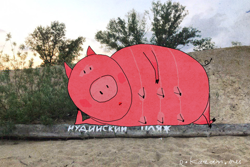 Пока кто-то пытался утащить артефакты с той самой булыжной мостовой, бдительные казанцы находили там ляпы. Что здесь пугает больше – грубая ошибка в слове или сам пляж – мы не решили.