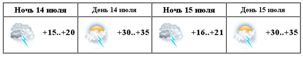 Примерно та же ситуация сохранится в течение всех выходных: днем 14 и 15 июля ожидается до 35 градусов тепла, возможны грозы.