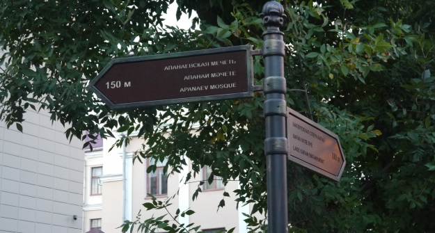 Гулять можно как по тротуару, выложенному брусчаткой, так и по самой дороге. Машинам въезд на улицу закрыт. Это подтверждают знаки, установленные в начале и в конце улицы Каюма Насыри – синий круг с пешеходом внутри на белом фоне с подписью «Зона». Подпись указывает на то, что знак действует не только до ближайшего пересечения проезжих частей, а до знака «Конец пешеходной зоны». Также их дублирует знак «Движение запрещено». Водителям сюда лучше не заезжать.