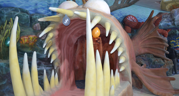 Океанариум открылся в здании аквапарка «Барионикс». Заблудиться казанцам будет сложно: на страже океанариума – большая плотоядная рыба. Прямо в пасти рыбы обычно стоит охранник-билетер.
