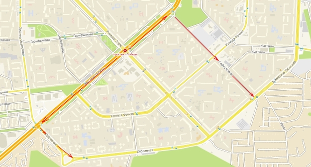Для того, чтобы избежать вечных пробок на перекрестке Зорге-Фучика, можно воспользоваться развязкой и свернуть от улицы Зорге на проспект Победы. Тогда повернуть к Дубравной можно будет у ТЦ Сити-Центр. А проехать на улицу Сафиуллина казанцы смогут без проблем в там, где у проспекта Победы начинается Горкинский лес.