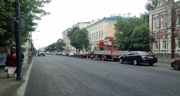 Для проезда по Карла Маркса автомобилистам оставили две крайние правые полосы. Поэтому у площади Свободы скапливается довольно большая пробка. Водителям, которые планируют ехать дальше, в сторону Кремля, лучше заранее, на первом же перекрестке с улицей Толстого, свернуть и ехать по улице Большая Красная. Тем же, кто стремится в центр несмотря ни на что, придется выстоять очередь.