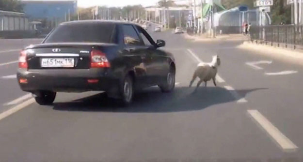 За сбежавшим животным устроили погоню два автомобиля. Напуганный баран бежал по дороге в районе улицы Ямашева и почти добежал до моста у развязки с улицей Декабристов, игнорируя правила дорожного движения. Гонки за бараном прекратились, когда животное все-таки удалось поймать.