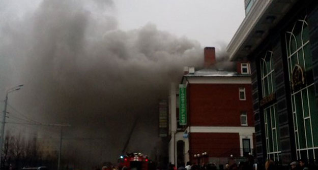 На нижних этажах горящего здания располагаются «Alan Clinic», кафе «Subway» и ресторан «Шантарель».
