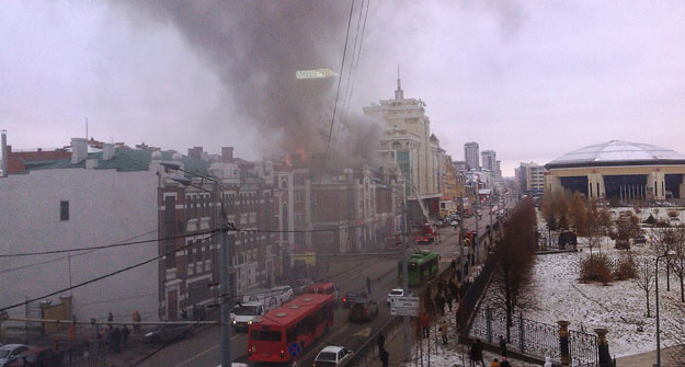 В Казани продолжает гореть здание на улице Островского, 57. Пожарные присвоили ему 3-ю категорию сложности из 4-х возможных.