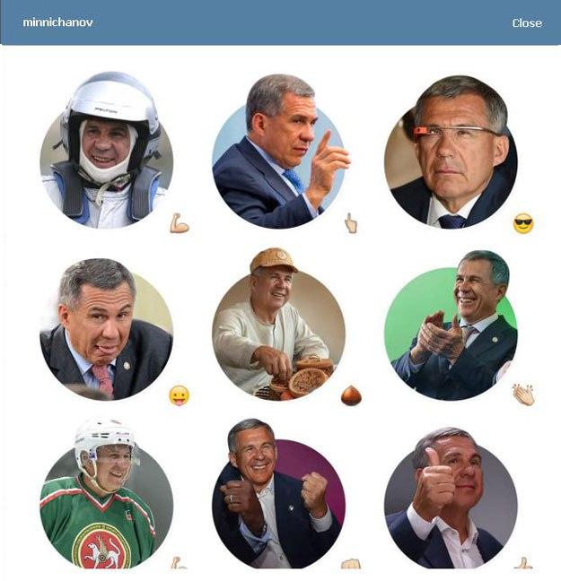 «Сделал тут на днях небольшой пак стикеров для Телеграма с Рустамом Нургалиевичем, пользуйтесь на здоровье. Если у кого есть хорошие фотографии с Миннихановым скидывайте дополню», — написал на своей странице в «Facebook» руководитель студии «Alto Vision» Марат Хабибуллин.