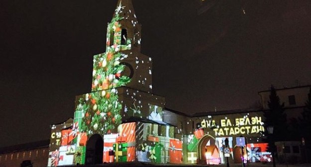 В предновогодние дни Казанский кремль превратится в гигантский экран. На Спасскую башню будет проецироваться световое шоу в формате 3D-mapping.