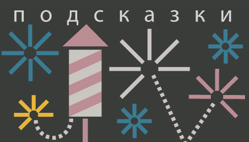 - фейерверки (раскручиваются, взлетают, оставляя шлейф, и взрываются);