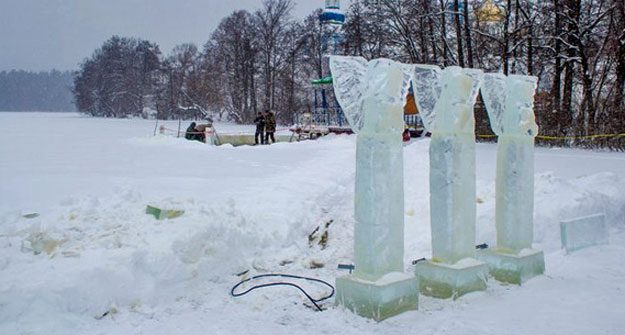 В Татарстане, под стенами Раифского монастыря, открылся ледовый городок. Скульптуры в городке вырезаны изо льда Раифского озера. Как сообщается на сайте митрополии, авторами фигур стали 4 скульптора.