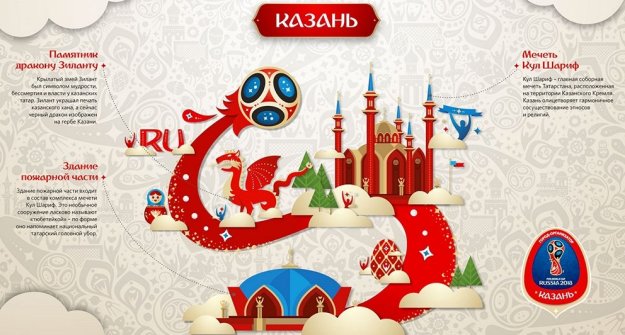 Символом Казани на чемпионате мира станет дракон Зилант. Именно такой образ, считают организаторы, легче запомнится гостям мундиаля. К примеру, Москву болельщики узнают по собору Василия Блаженного.