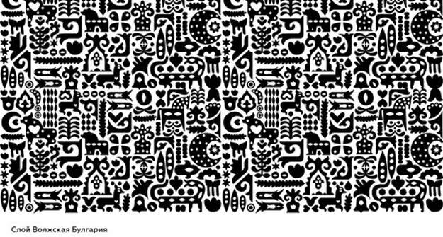 Ради создания образа судьбу Татарстана было решено рассматривать полностью – с Волжской Булгарии и Золотой Орды. Каждой из эпох соответствует свой орнамент. Вот так, например, специалисты увидели период Волжской Булгарии: