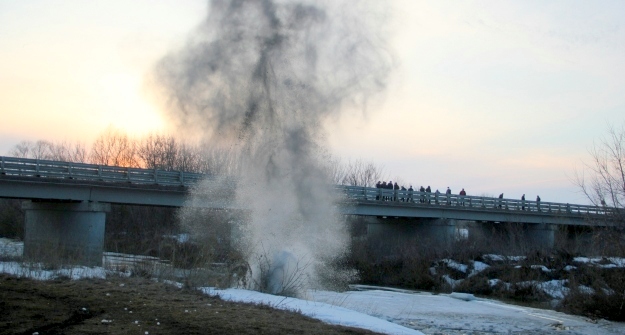 Первый взрыв произошел в Тюлячинском районе на реке Большая Меша. Динамит заложили под мостом недалеко от населенного пункта Караширма. Как сообщает ГУ МЧС по РТ, если не освободить Большую Мешу ото льда вовремя, то вода может разлиться на километры.