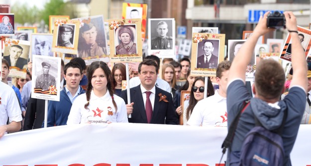 Колонна прошла по маршруту от НКЦ «Казань» до площади 1 Мая. Мэр Казани Ильсур Метшин вышел на марш вместе со своими детьми, которые держали в руках портреты своих дедов и прадедов. Также к акции присоединился президент РТ Рустам Минниханов: в его руках было фото дяди, который погиб на фронте.