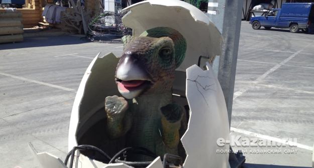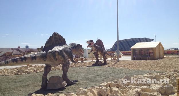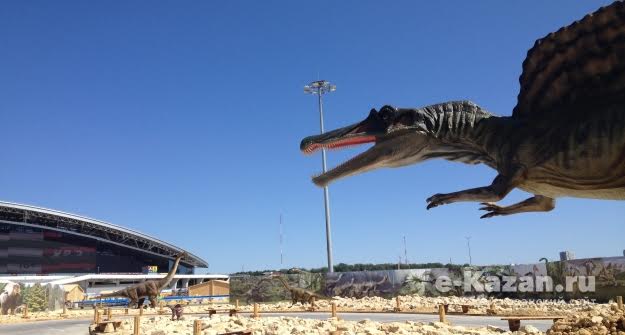 Парк динозавров заработает на открытой площадке у «Казань-Арены», прямо под медиафасадом. Там уже установили декорации, соответствующие тому времени. Вход в парк – со стороны улицы Чистопольская.