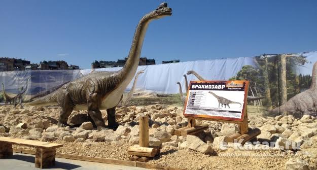Динозавры приехали в Казань из Китая, где были сооружены добрыми жителями города Цзыгун провинции Сычуань.