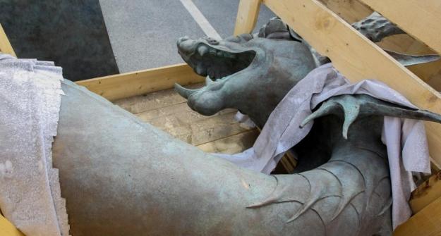 Вчера у Центра семьи «Казан» началась сборка фигур зилантов. Скульптуры выполнены известным бурятским мастером Даши Намдаковым.
