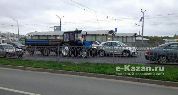 На проспекте Ямашева, рядом с «Казань-Ареной», произошло ДТП с участием трактора. Сельскохозяйственная машина под названием «Беларусь» ударилась об «Audi».