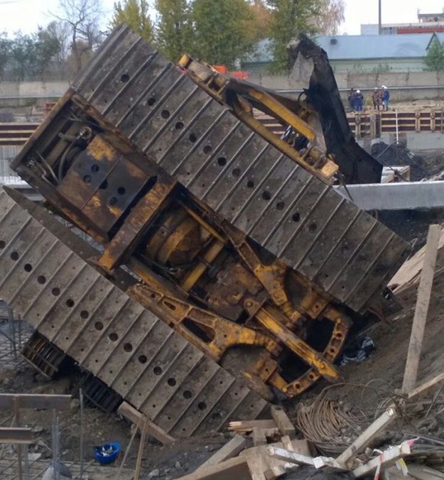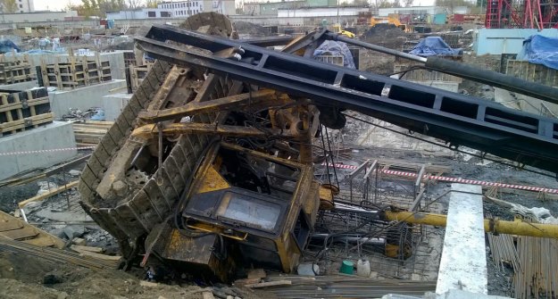 В Казани на стройке по улице Лебедева упала сваебойная машина. При забивании свай из-за схода грунта машина упала в котлован.