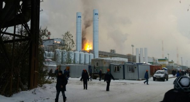 Сообщение о пожаре поступило в 15:20. Возгорание произошло в компрессорной в одном из цехов. По предварительным данным, горел водород или его соединения. Площадь пожара – 50 кв. метров.