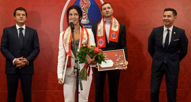 Певица Нюша и экс-хоккеист «Ак Барса» Алексей Морозов стали послами Казани на ЧМ-2018. Вчера мэр города Ильсур Метшин вручил им специальные сертификаты.