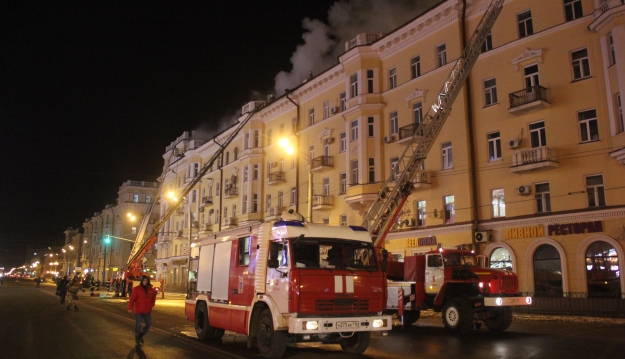 Пожар произошел 10 февраля. Причиной пожара стали сварочные работы в квартире на пятом этаже дома. Обвиняемые сваривали кровать, одна из искр попала между досками на полу. Мужчины попытались справиться с пламенем своими силами. Но огонь по деревянным перекрытиям перекинулся на кровлю здания. Площадь пожара составила 600 кв. метров. Никто не пострадал.