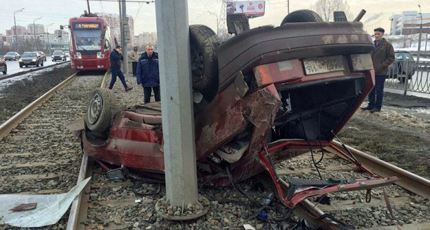 От удара автомобиль «LADA» отбросило на трамвайные пути, после чего в фонарный столб. Автомобиль «Infinity FX37» наехал на бордюрный камень.
