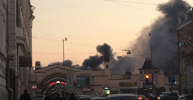 Сегодня вечером в районе Колхозного рынка произошел сильный пожар. Горел павильон «Торговая слобода».