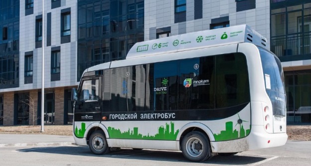 В Иннополисе запустили электробус. «КАМАЗ 2257» курсирует по мини-городу каждые полчаса.