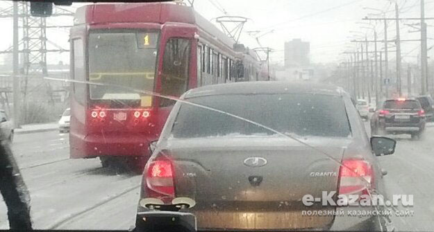 Из-за ДТП на Кировской дамбе встали трамваи. Очевидцы насчитали более 10 трамваев.