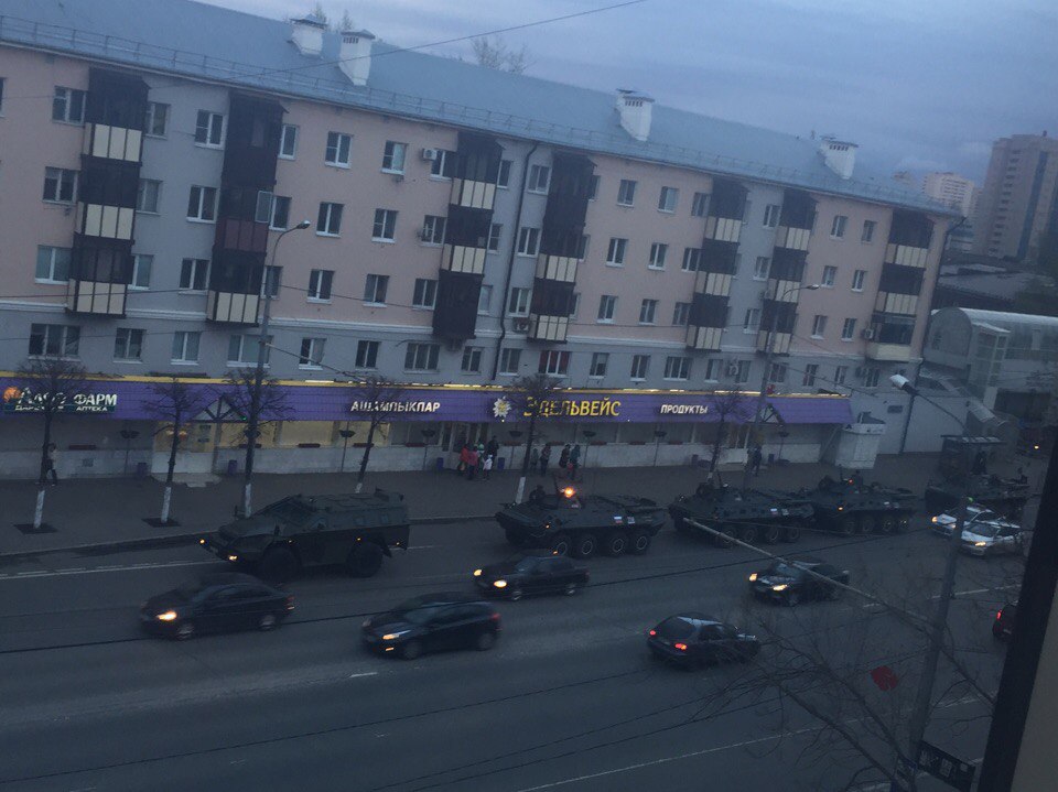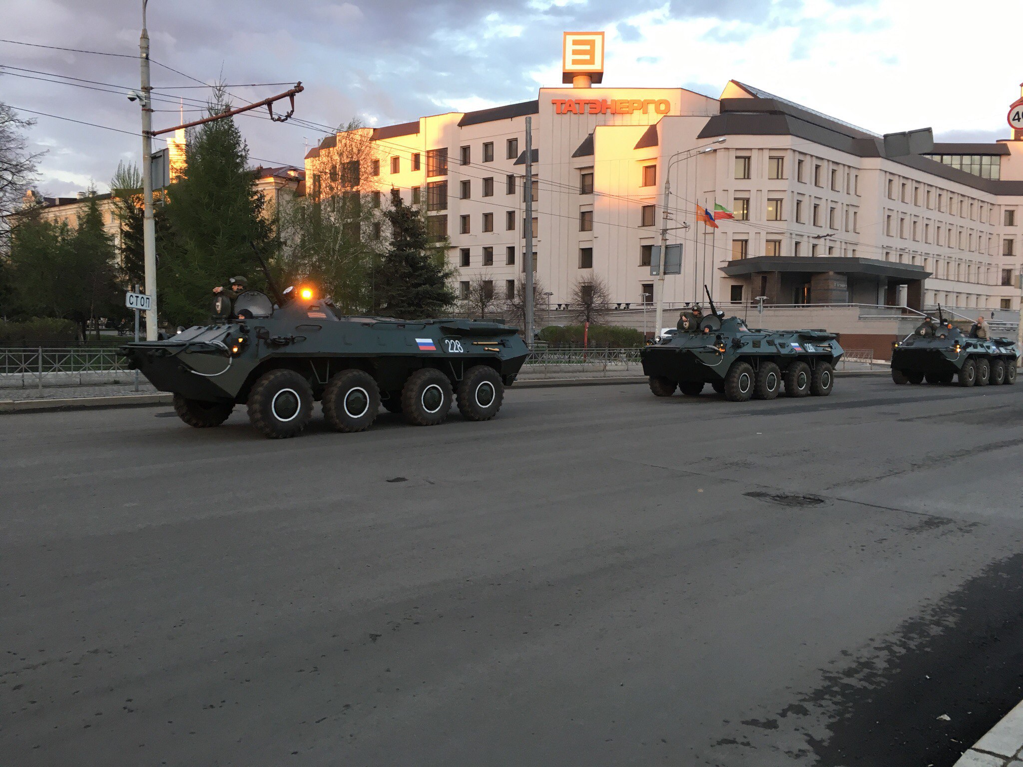 В Казани прошла репетиция парада Победы. Пользователи социальных сетей не дремали и почти мгновенно стали выкладывать фотографии с места событий. Боевая техника, марширующие солдаты и развевающиеся знамена – все это можно было увидеть вчера в центре города.