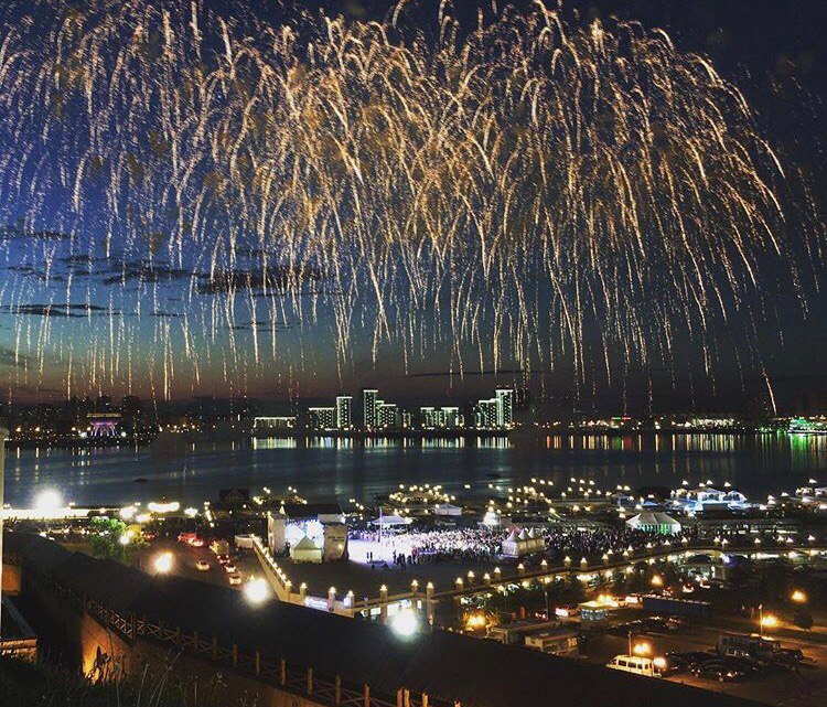 Вчера в Казани масштабно отметили День России. Праздник завершился в 22:00 салютом, который был виден из разных районов города.