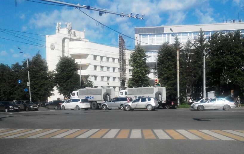 Авария случилась на улице Ершова, в районе Советской площади и больницы РЖД. Грузовик ударился об легковой автомобиль. Вторая машина ОМОНа в ДТП не попадала, но место аварии не покидает. В итоге два грузовика перекрыли движение в полторы полосы.