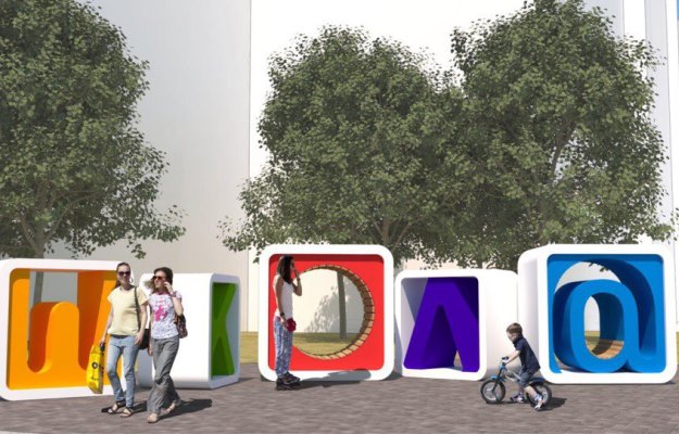 Зона находится между фасадами жилых домов с одной стороны, и школой и гимназией с другой. Поэтому проект предполагает создание атмосферы «школьного двора». Хотя космическая тематика тоже смотрелась бы неплохо, почему бы и нет.
