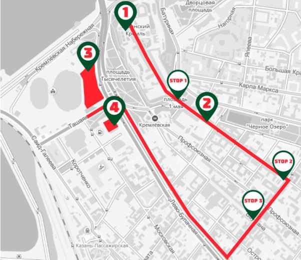 Маршрут следования чемпионского автобуса. Фото: ak-bars.ru