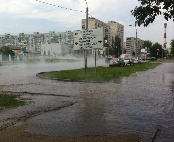 Сейчас на перекрестке Чуйкова – Мусина из-под земли бьет горячая вода. Кругом пар, ничего не видно.