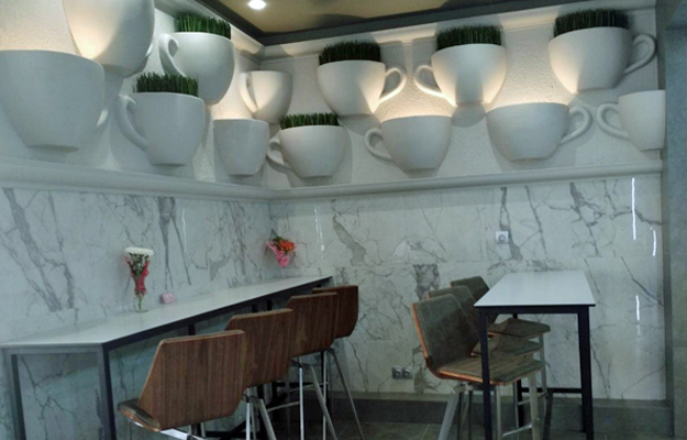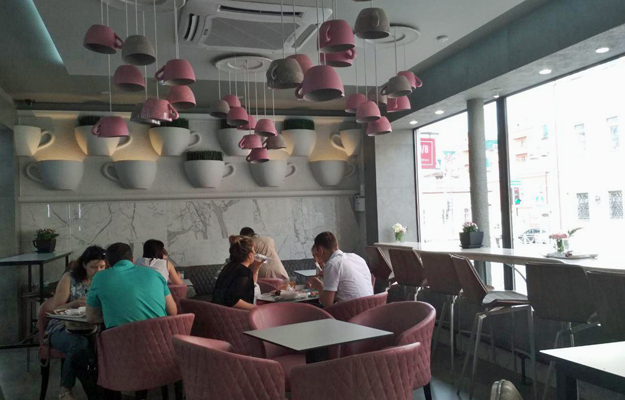 На стенах теперь красуются гигантские кофейные чашки с травой или лампами внутри (это модно). Барные стулья удобные и не очень высокие, вероятность оконфузиться стремится к нулю. С потолка свисает бессчетное количество кружек поменьше, которые тоже играют роли ламп на этом празднике сладкой жизни. Кажется, что в «Лакомке» стало больше воздуха, там приятно находиться.