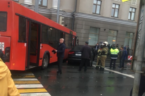 Обновлено в 15:18. Утреннее столкновение автобуса и Audi попало на видео. В нем есть три примечательных момента.