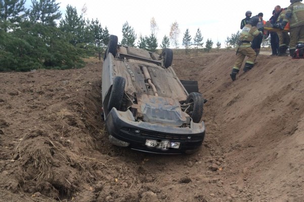 Вчера на улице Песочная в Авиастроительном районе произошло серьезное ДТП. Lada Priora вылетела в кювет и перевернулась на крышу.