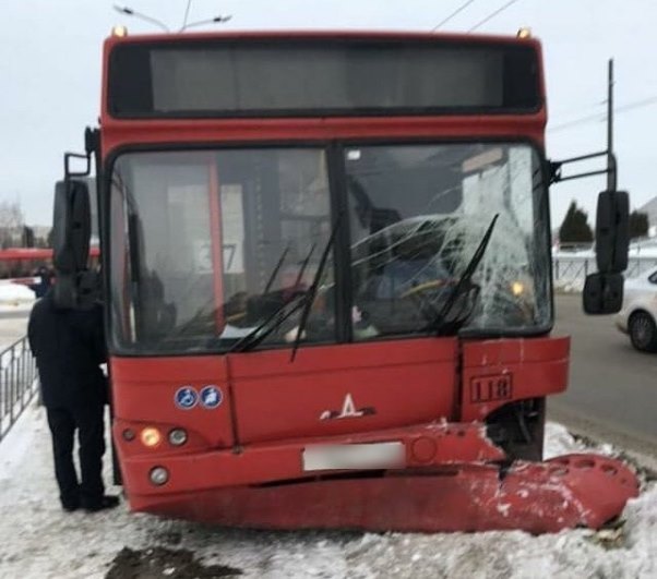 Сегодня утром в Казани произошла очередная авария с участием общественным транспорта. Автобус №37 врезался в столб в районе ЦУМа.