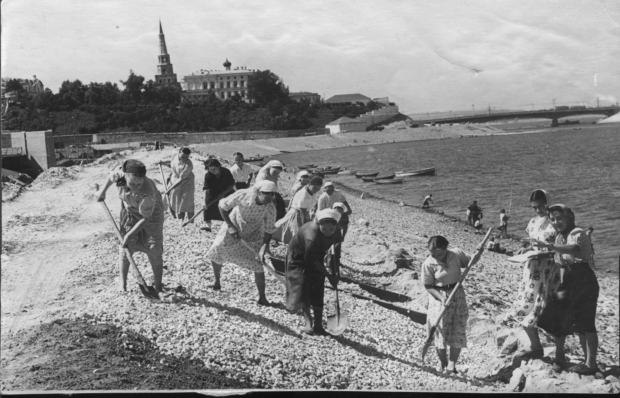 9. 1957 год. Давным-давно в далекой галактике. Идет строительство Федосеевской дамбы. Сейчас на этом месте пешеходная зона и кафе с эклерами – летом, а зимой самый популярный каток Казани.