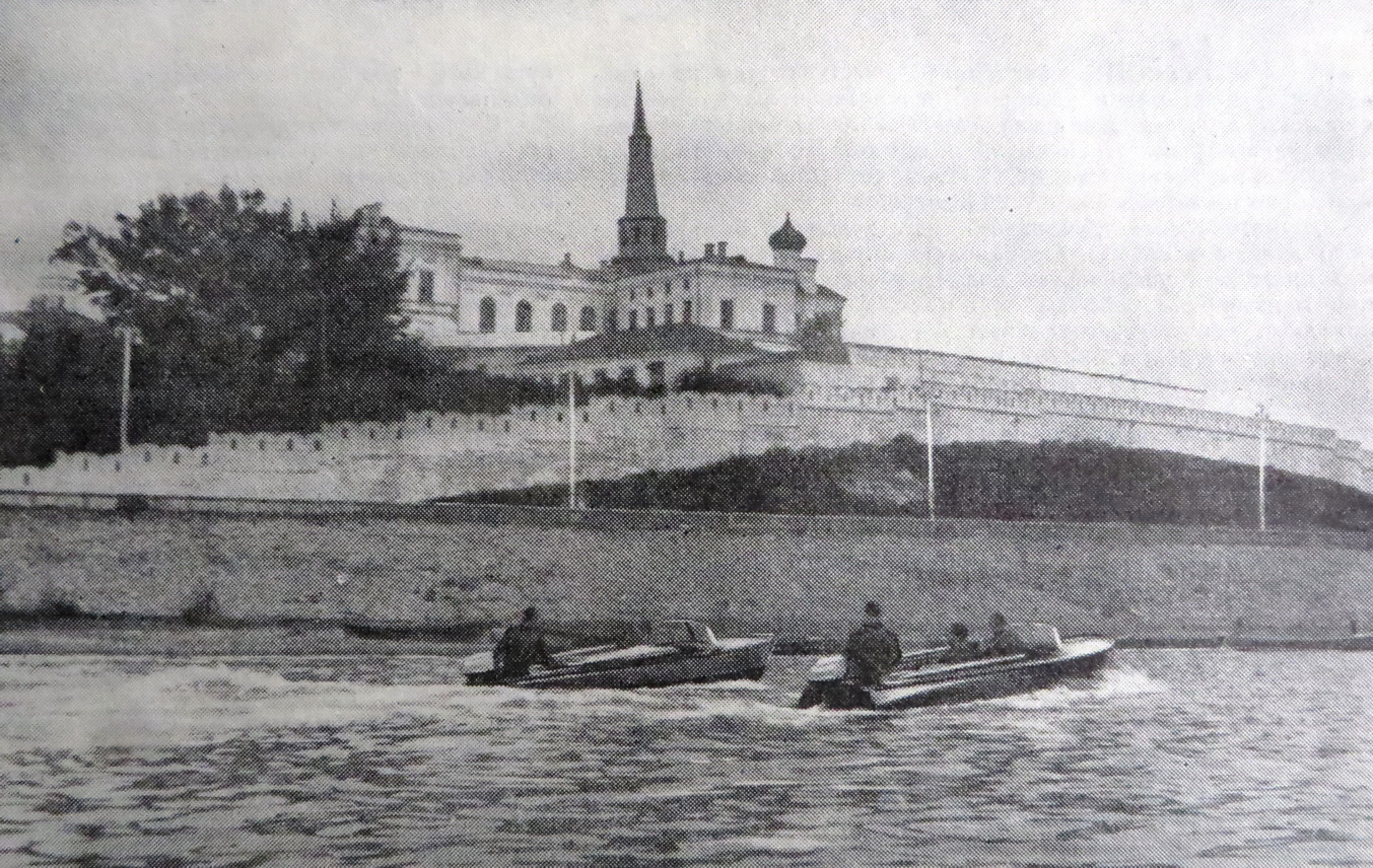 4. 1964 год. Вид с воды. Казанцы катаются на мотолодках. На заднем плане позируют Казанский Кремль и часть будущей набережной.