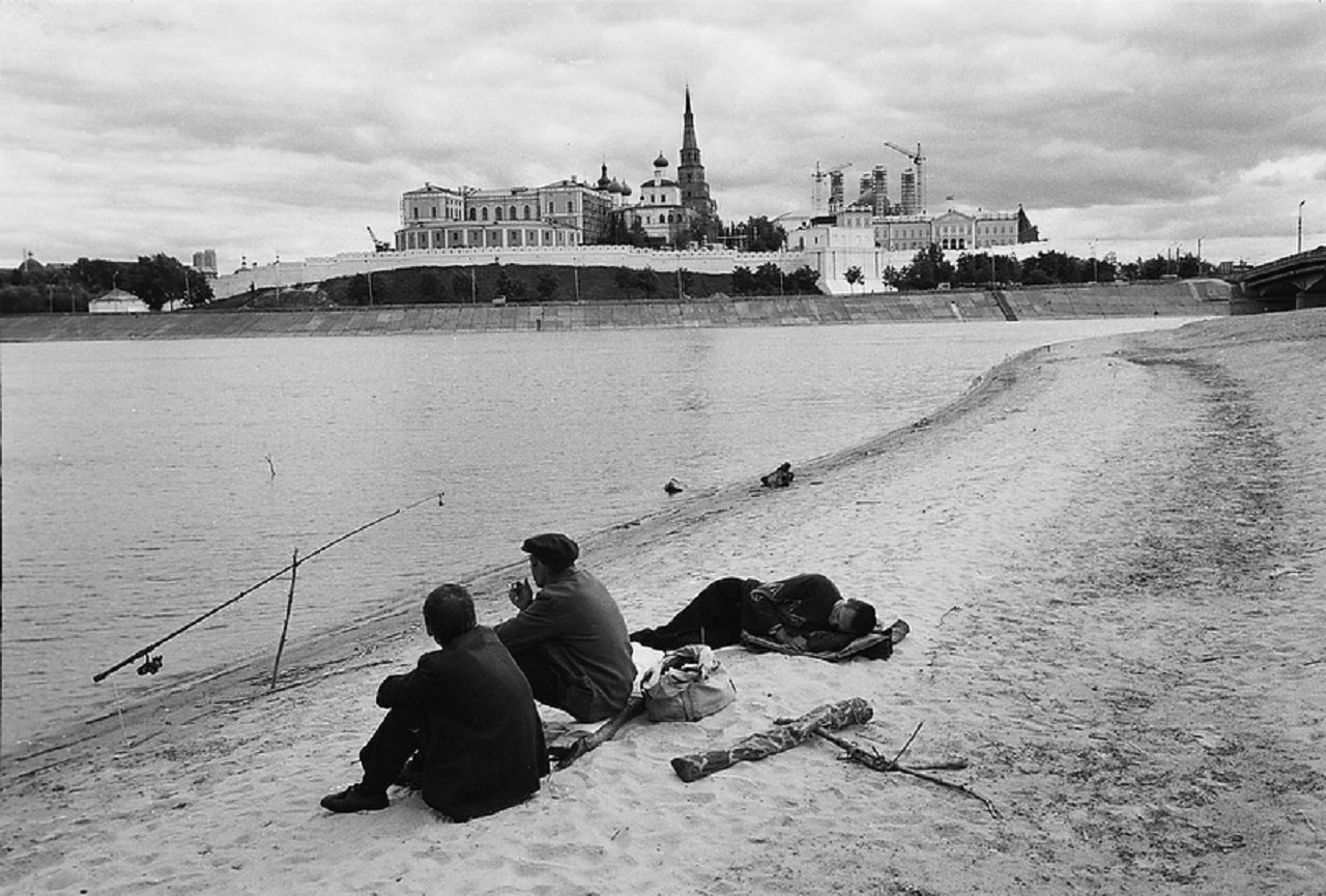 11. Год неизвестен. Это фото снято с той стороны, где сейчас находится Чаша. Компания рыболовов умиротворенно отдыхает на фоне Федосеевской дамбы. Тогда казанцы не предполагали, что там появится та самая набережная. На заднем плане виднеется строящийся Кул-Шариф.